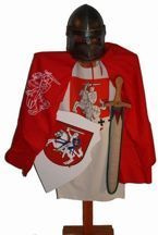 Rycerz krzyżacki (duży) garnczkowy, tunika, tarcza, miecz z pochwą