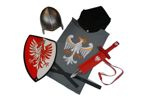 Rycerz polski orzeł tunika, hełm, tarcza i miecz 49 z pochwą czerwoną