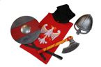 Zestaw rycerza orzeł - tunika biała z kapturem, tarcza i miecz 50 z pochwą