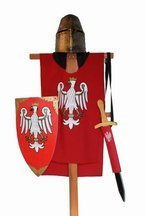 ( ilość produktów: 64 )Rycerz pancerny polski: zbroja, płaszcz czerwony, miecz 50 cm z pochwą, tarcza