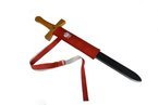 Miecz średniowieczny ze zbroczem z pochwą czerwoną