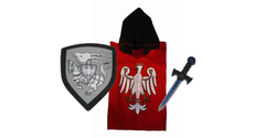 Zestaw rycerski tunika czerwona + miecz i tarcza piankowe (jeździec)