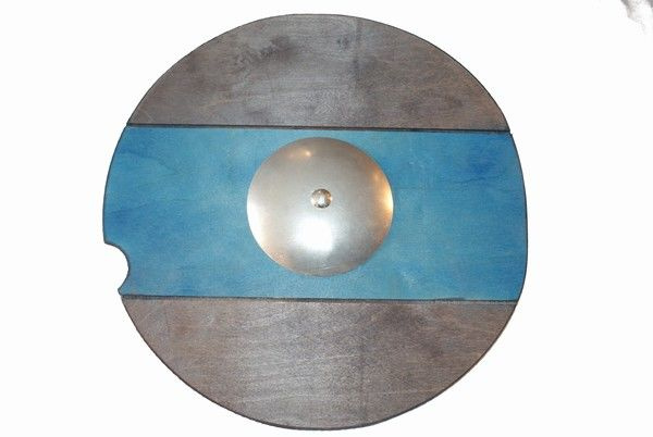 - tarcza duża okrągła drewniana o średnicy 33 cm z wygodnym drewnianym uchwytem i metalową ozdobą;